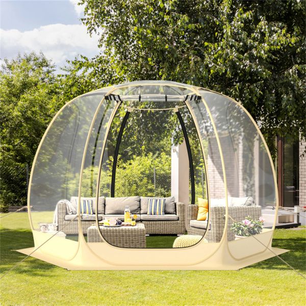 ● Weatherproof and Transparent Material: Crafted from cold-proof, sun-proof and waterproof PVC, the oversize instant shelter ensures warmth and offers protection from external elements. Meanwhile, the transparent panel offers a 540° view of the surrounding environment.